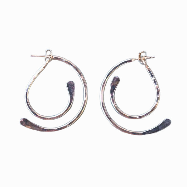 Our unique hammered sterling hoop earrings add fun to your everyday wear or a night out with the girls. These quality post earrings feature a front and back hoop with a playful swinging motion. They are artisan-crafted with .925 silver and are 1 3/4" long.